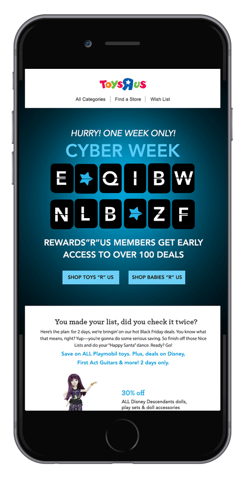 For the Cyber Week campaign at Toy"R"Us, I created split-flaps as the campaign's visual identifier revealing new savings messages during marketing executions.